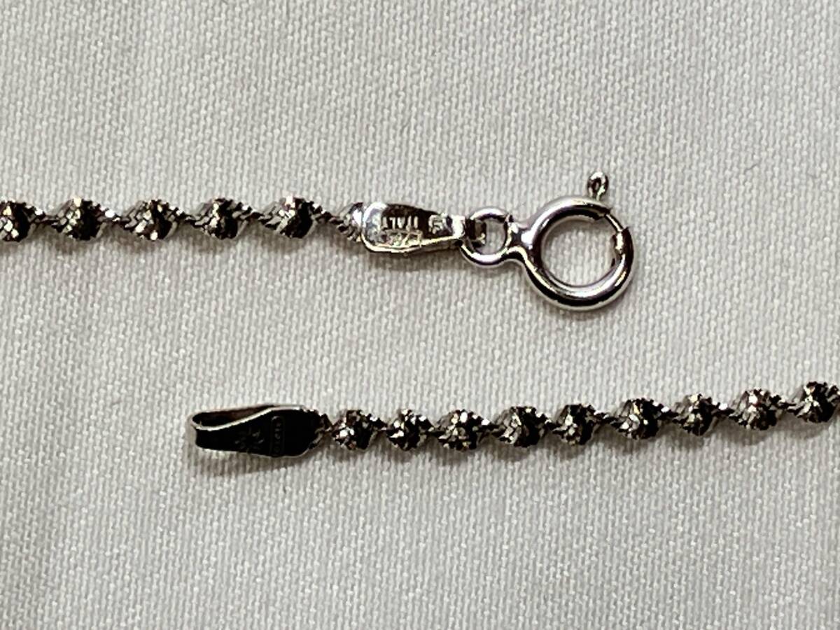 チェーン全長:約 40cm 高さ:約 1.1cm 幅:約 0.75cm 総重量:約 4.4g サイズ表記(~cm位)は目安です。ブランドやデザインによって多少前後する場合がございます。予めご了承の上ご注文ください。 ![]() | ||||||