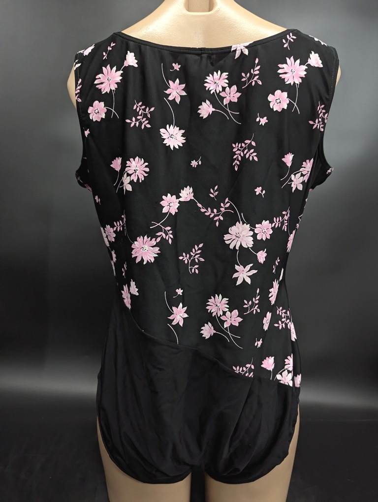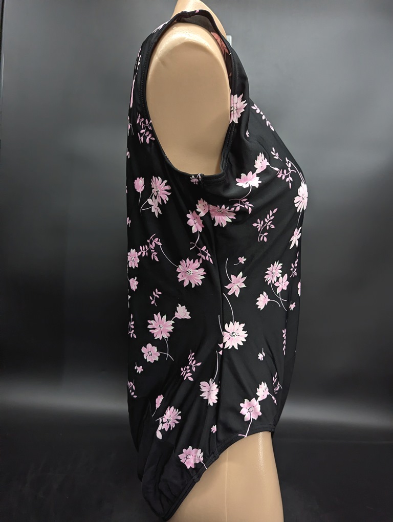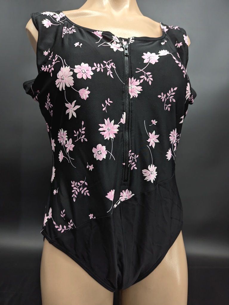 3241C 送料185円♪ 大きいサイズ 25 4L ブラック 花柄デザイン 胸元ジップ ハイカット 水着