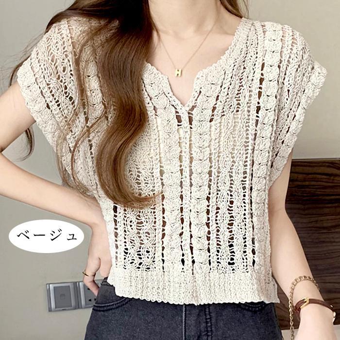 新品 レディース レース ニットベスト ブラウス 透け編み ベージュ aa762