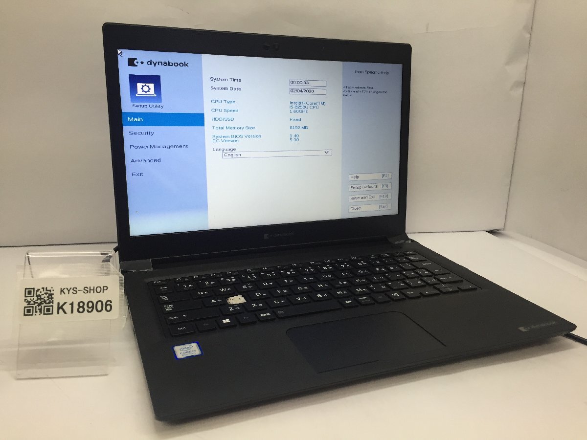ジャンク/ TOSHIBA dynabook S73/DP Intel Core i5-8250U メモリ8.19GB ストレージ無し 【K18906】