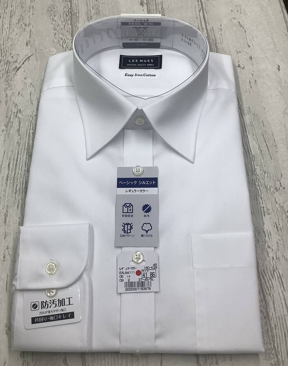 新品未使用★カッターシャツ★41-86 長袖Lサイズ  ★綿100% ★レギュラーカラードレスシャツ ★白無地ブロード 形態安定