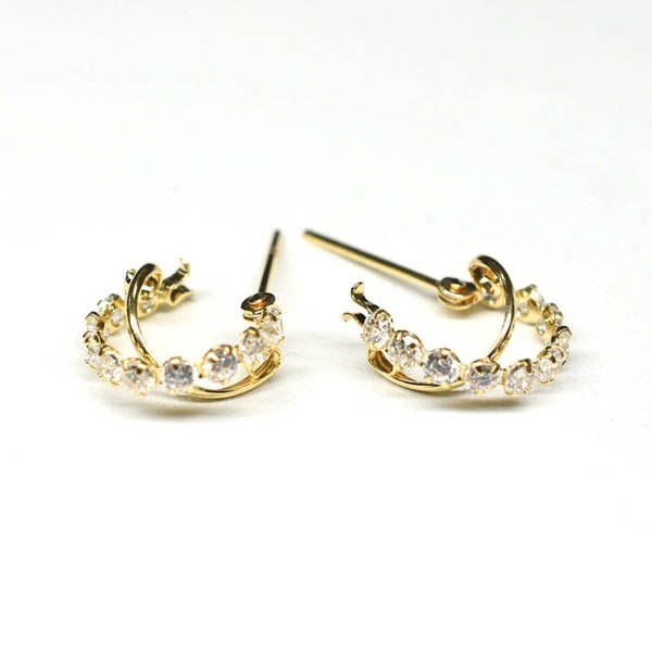 K18の12mmフープに、2mmのCZを20ピースセットした上品な輝きのピアス。