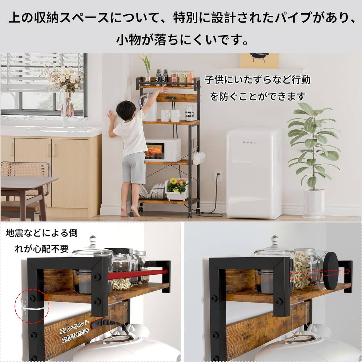 ヴィンテージ色 欲しいものがいつも手の届く場所に キッチンベイカーラック 幅57×奥行39.2×高さ133cm キッチンラック レンジ