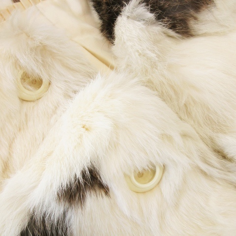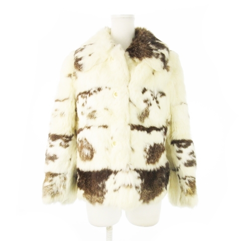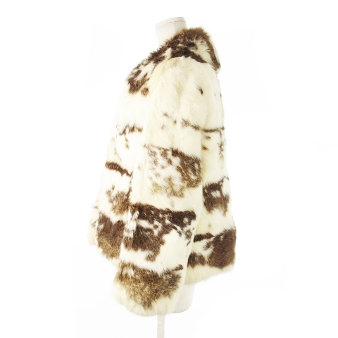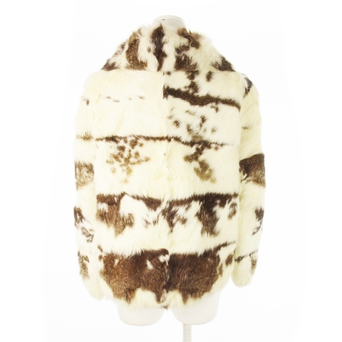ノーブランド ファーコート ショート丈 ファージャケット ラビットファー 毛皮 ビッグカラー ミックス 白 アイボリー 茶 ブラウン