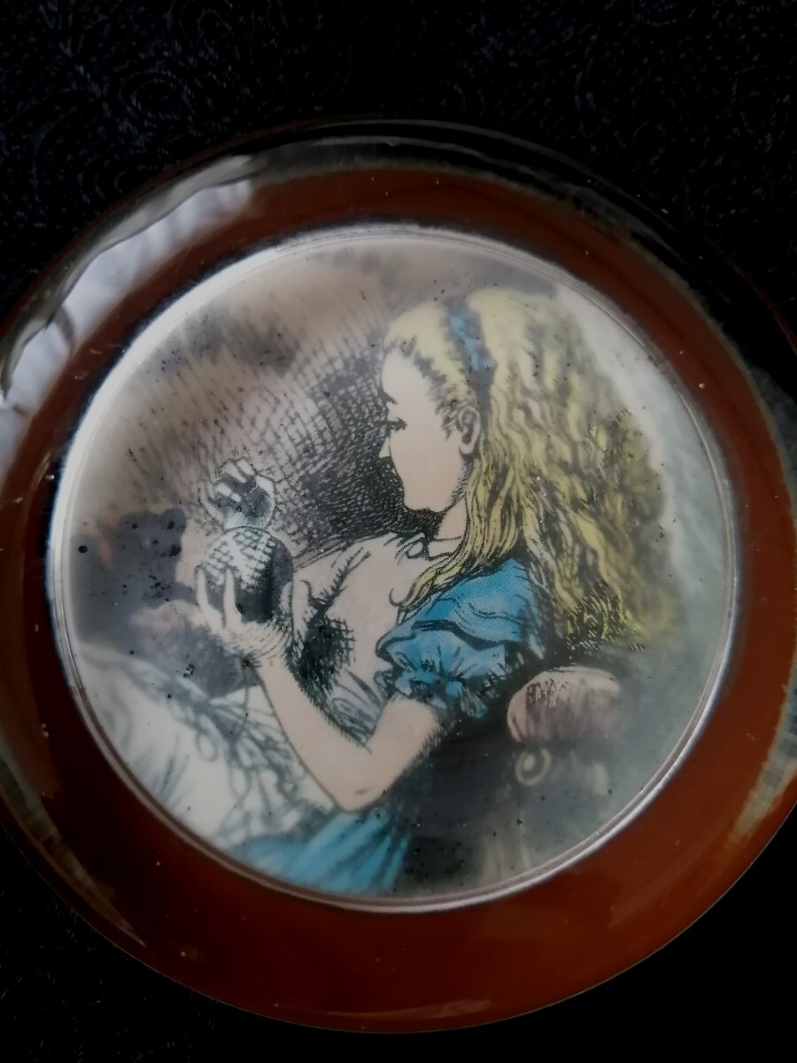 リセエンヌ風の少女が香水瓶がか何かを空けているシーンでしょうか。