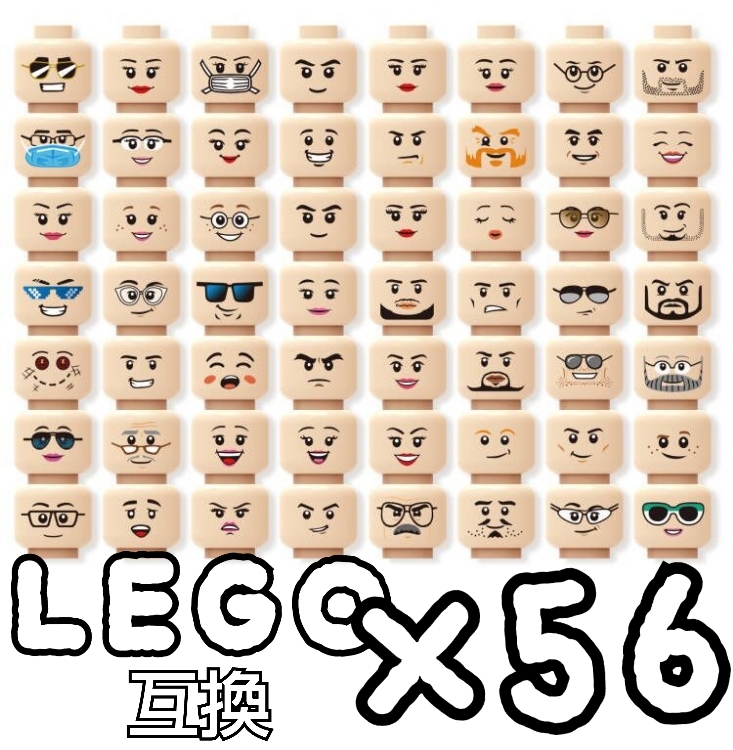 ミニフィグ 顔 LEGO互換 匿名配送 レゴブロック 誕生日プレゼント インテリア 表情 キャラクター ヘッド 肌色 頭 56セット