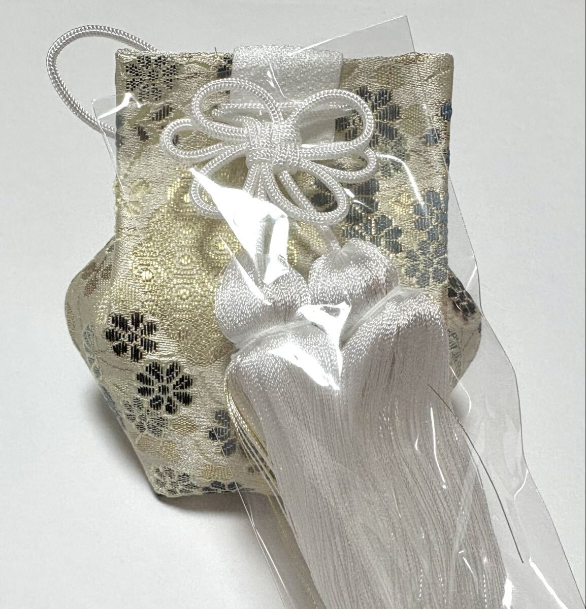 紐は縫い付けていませんので、お守りを入れる際は紐を切らずに解いて入れられます。