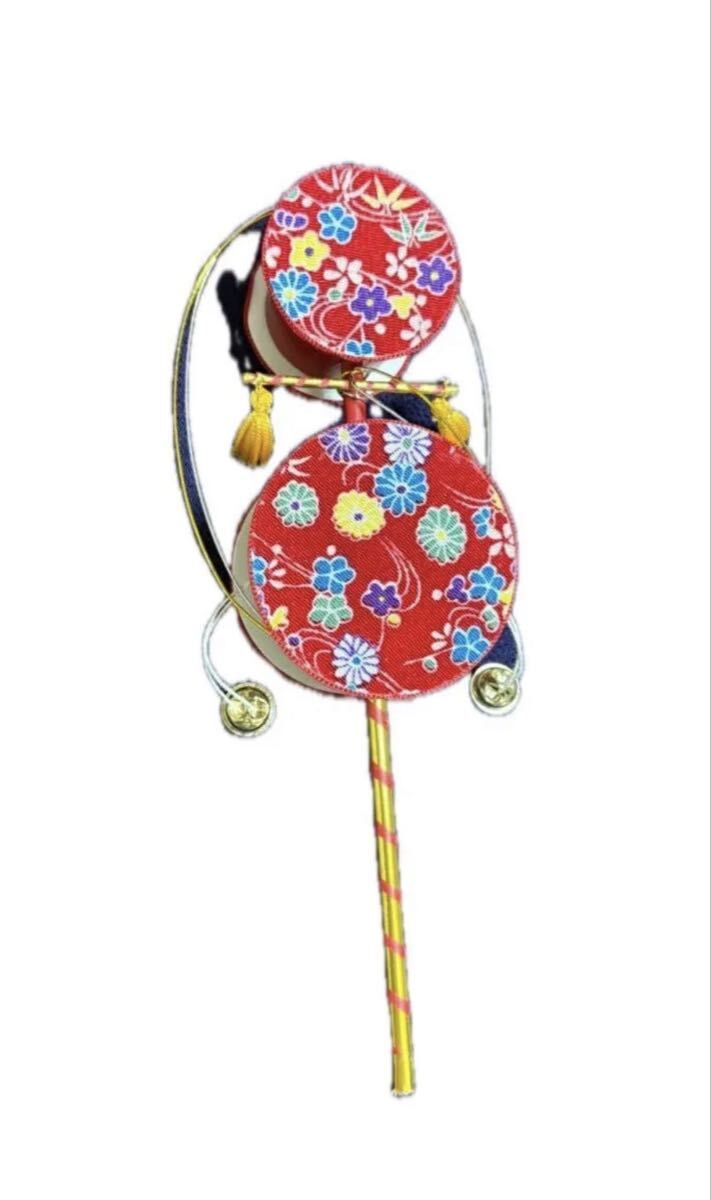 赤ちゃんの健やかな成長を願って贈られる縁起物。丸い形状で裏も表も同じように音が鳴ることから、「裏表のない、素直な子に育つように」という願いが込められています。また、太鼓の音には、邪気や悪霊を払う力があると信じられており、魔除けとしても使われてきました。