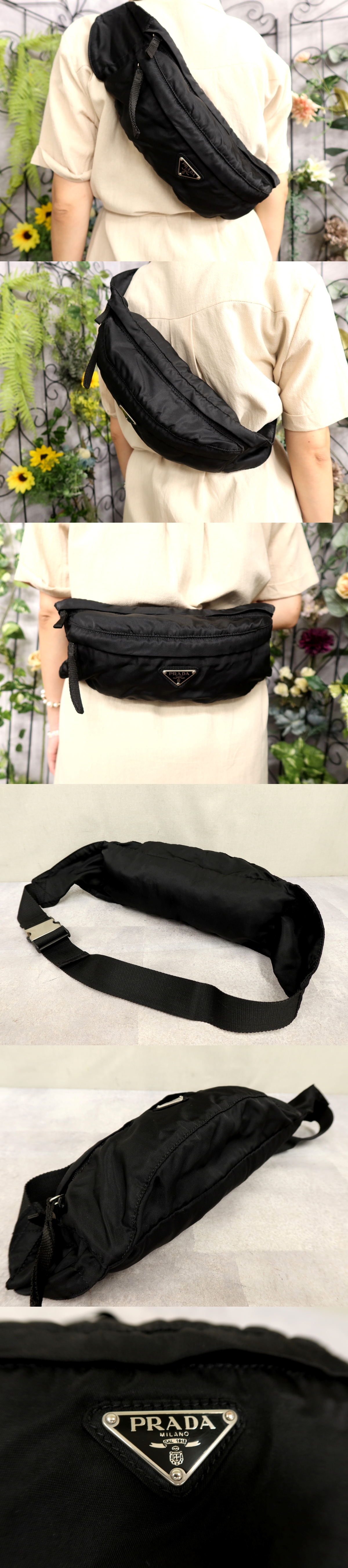 ●超美品●PRADA プラダ●三角ロゴプレート●ポコノ ナイロン●ウエスト ボディ バッグ●黒●シルバー金具●斜め掛け●イタリア製●Js59411