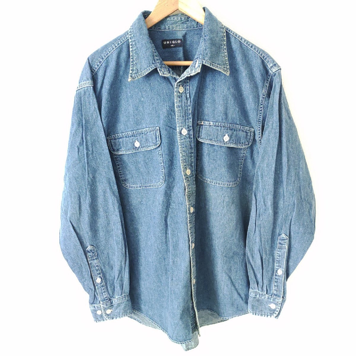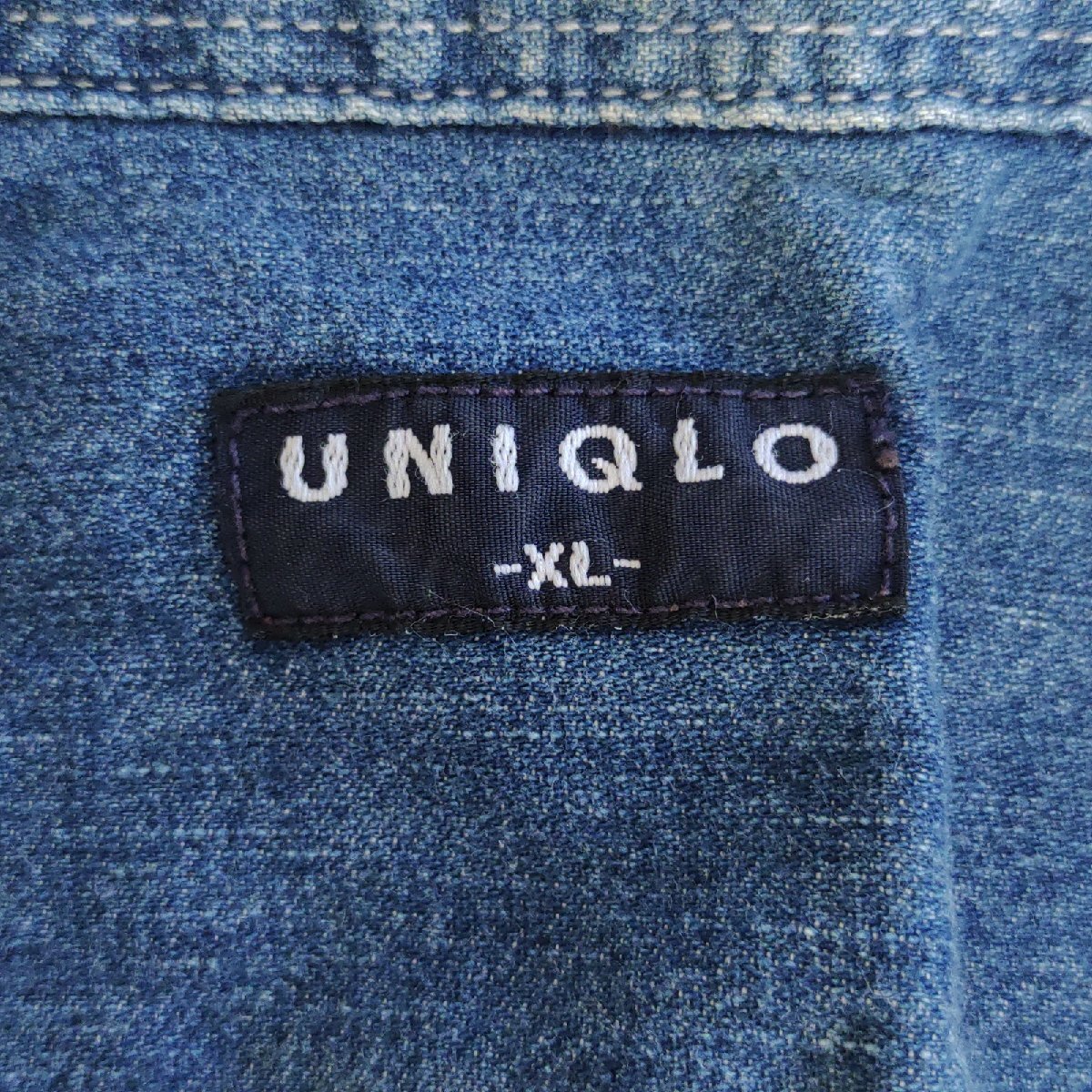 (^w^)b UNIQLO 初期 ユニクロ 80s 90s ビンテージ 長袖 デニム シャツ ジャケット トップス カットソー アウター アメカジ 紺 XL O14763DD