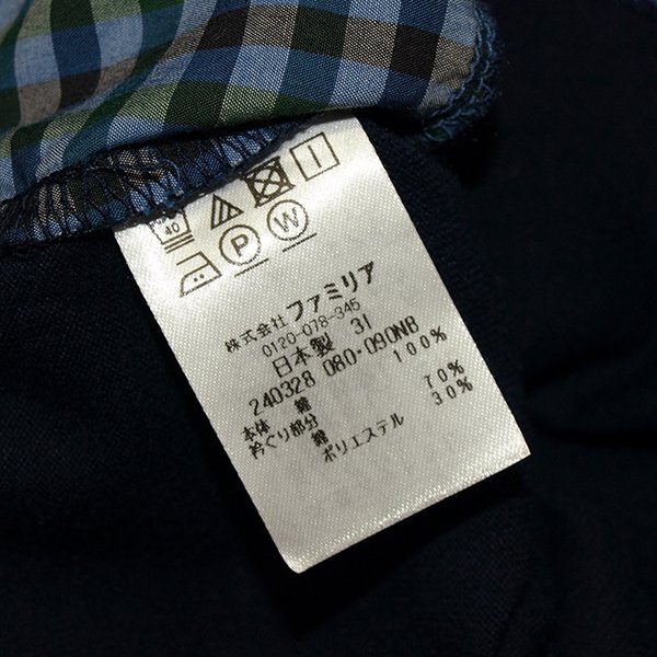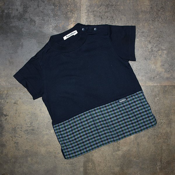 familiar◇ファミリア・半袖切り替えTシャツ 240328◇90サイズ ネイビー系×チェック 美品