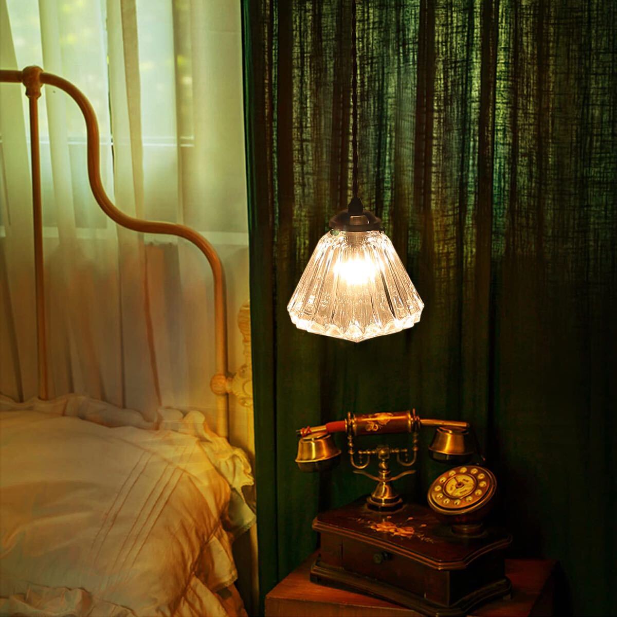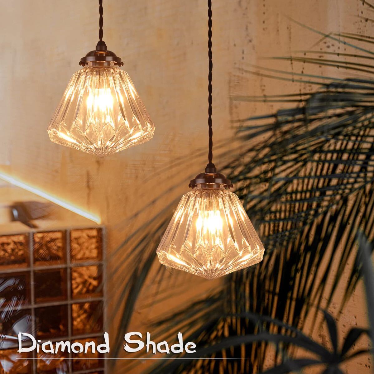 【味わい深い風合いとお洒落なシルエット】ダイヤモンドのようなフォルムが天井から降り注ぐように辺りをやさしく包んでくれるようなやわらかいイメージに。