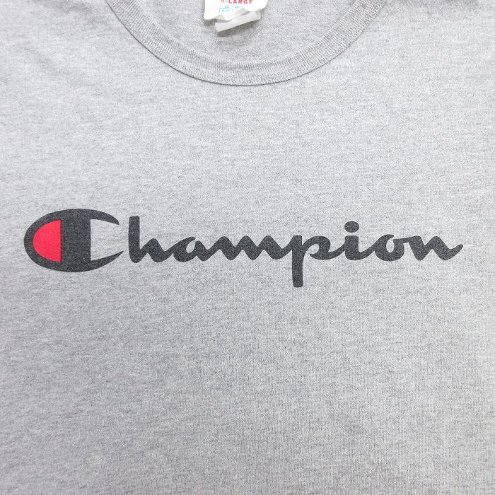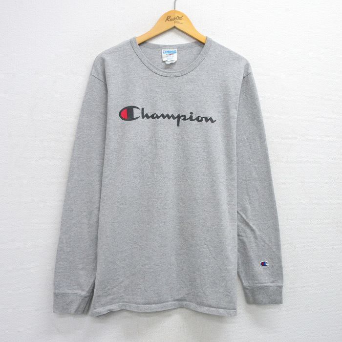 【商品名】 XL★古着 チャンピオン champion 長袖 Tシャツ メンズ ビッグロゴ クルーネック グレー 霜降り