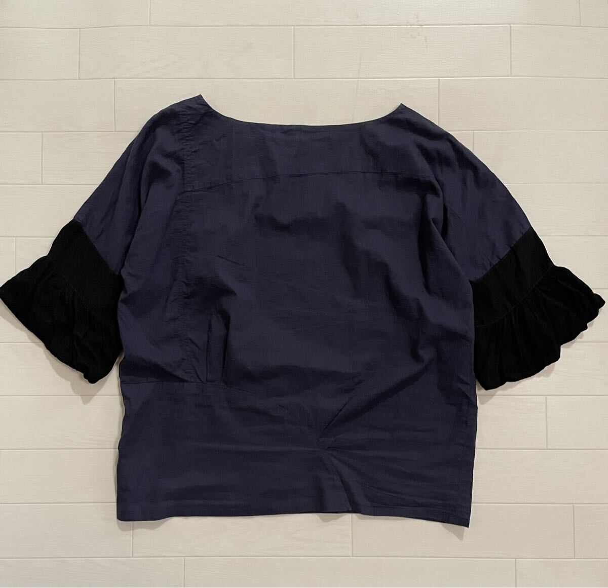 Yoriori ヨリオリ センソユニコsensounico バルーンフリルスリーブ トップス ネイビー ブラック size 38 商品番号YS1367