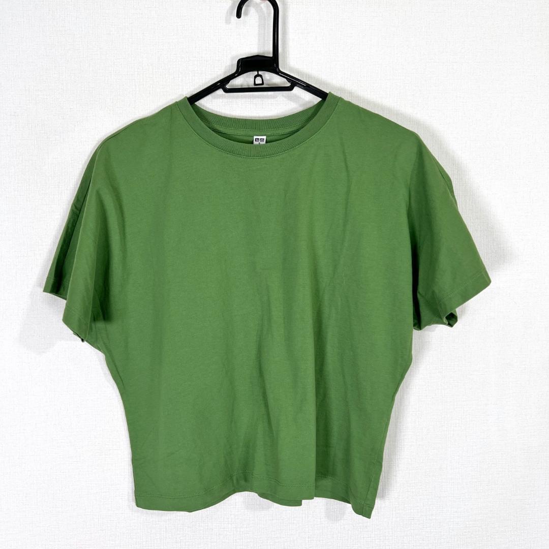 【UNIQLO】ユニクロ グリーン 無地 半袖 Tシャツ カットソー トップス レディース Sサイズ【a002】