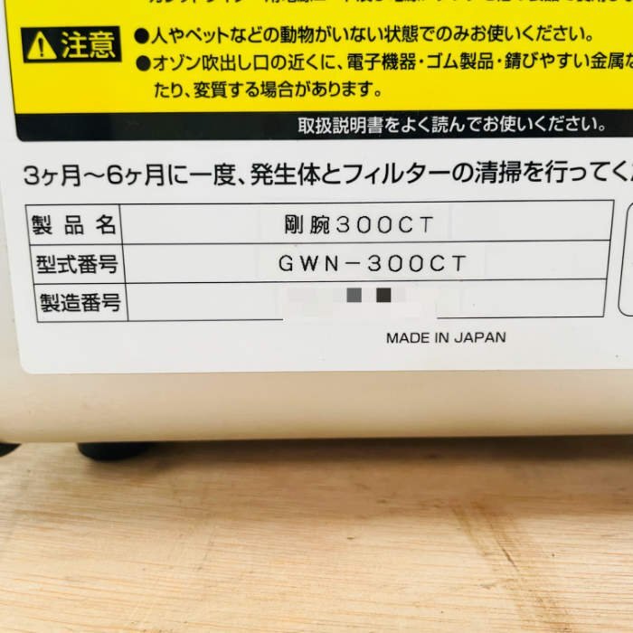 <仕様> 商 品 名 :剛腕300CT メーカー:オーニット 型 番:GWN-300CT 年 式:2020年 寸 法:約 幅 330mm × 奥行 170mm × 高さ 180mm 重 量:約 3kg 電 源:単相 100V 50/60Hz(専用ACアダプタ使用の場合) DC12V/DC24V オゾン発生量:300mg/h(20°C60%RH) 付 属 品 :写真に掲載されているものが全てとなります。 :シガーライターコードが付属しています。 :ACアダプターが付属欠品しています。 <動作確認> ・シガーソケットに繋ぎ、送風、ダイヤルタイマーが動作することを確認しました。 <状態> ・目立つ汚れやキズはありません。 ・商品の状態は写真にてご確認ください。 ・専門店ではないため、商品の詳細等のご質問にはお答え出来ない場合があることをご了承ください。 |