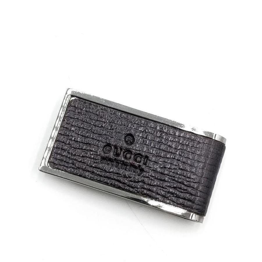 送料無料 美品 グッチ GUCCI マネークリップ レザー 本革 財布 小物 伊製 イタリア製 茶 ブラウン系 メンズ