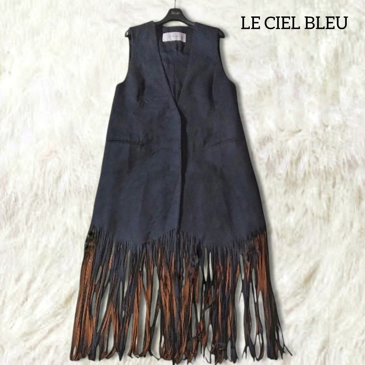 裾のフリンジデザインがアクセントになったロングベストになります