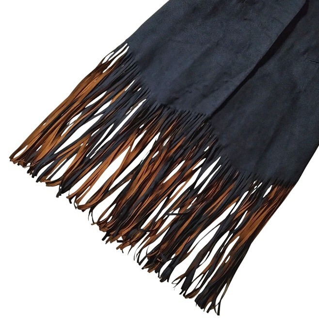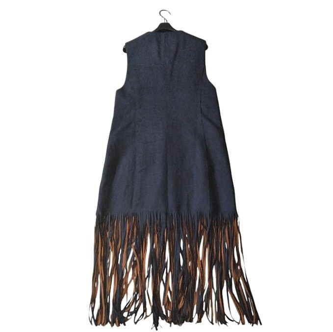 裾のフリンジデザインがアクセントになったロングベストになります