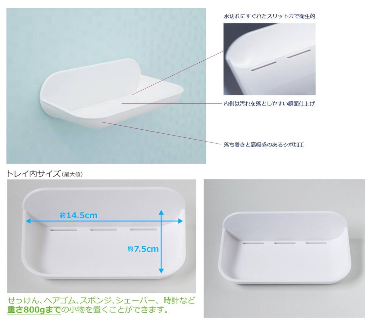 ●「磁着マグネット バストレイ」は、付け外しが何度でもでき、位置調整が簡単にできるバストレイです ●吸盤では使えなかったザラザラした面にもご使用いただけます ●浴室の壁をキズ付けにくく、サビないラバータイプマグネット使用 ●石鹸やヘア小物置きに便利です ●皿部は汚れの落としやすい鏡面仕上げです