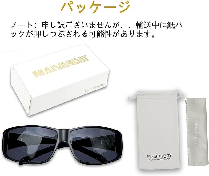 メガネの上からかけられる 偏光オーバーサングラス TR90 オーバーグラス UV400 紫外線カット 運転用 釣り マットブラック