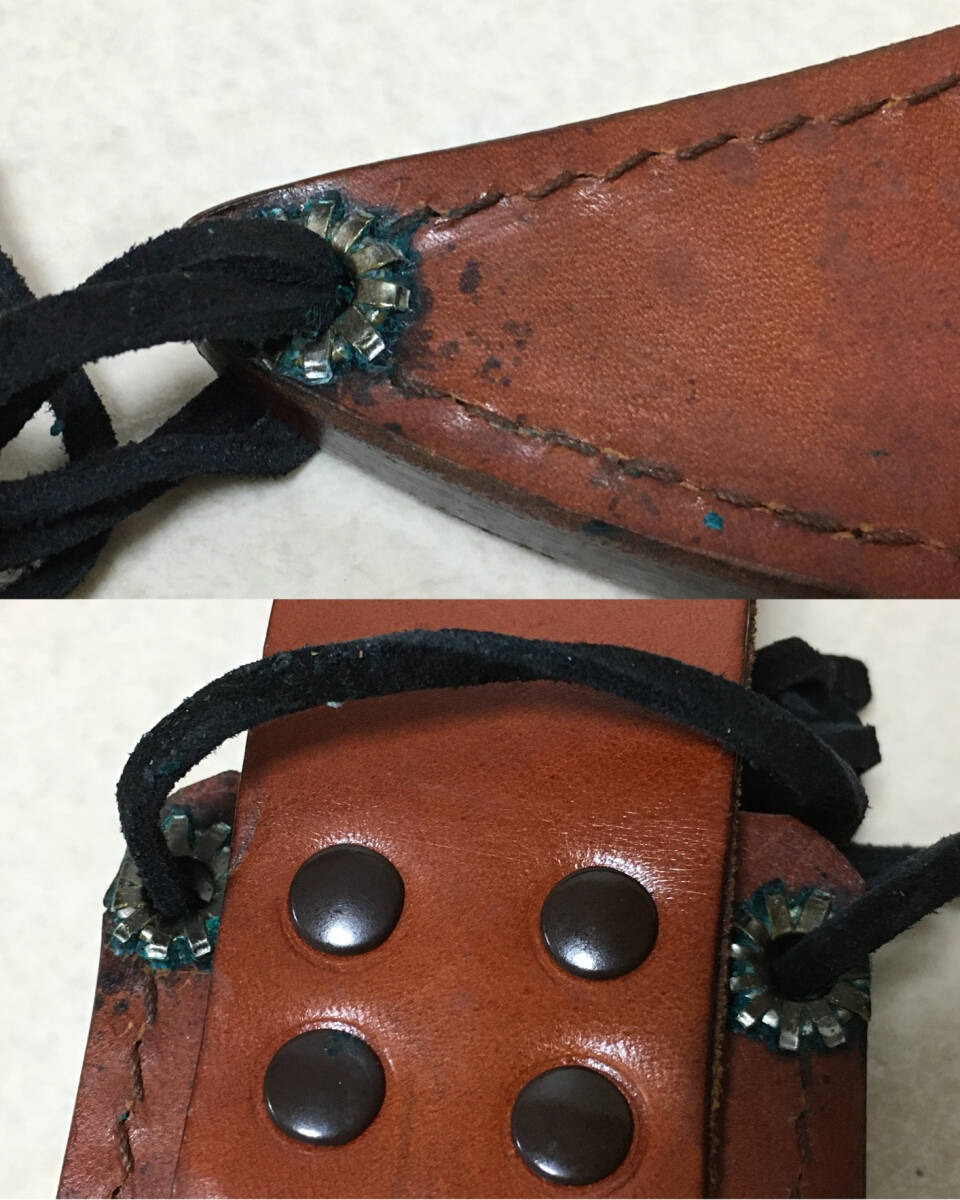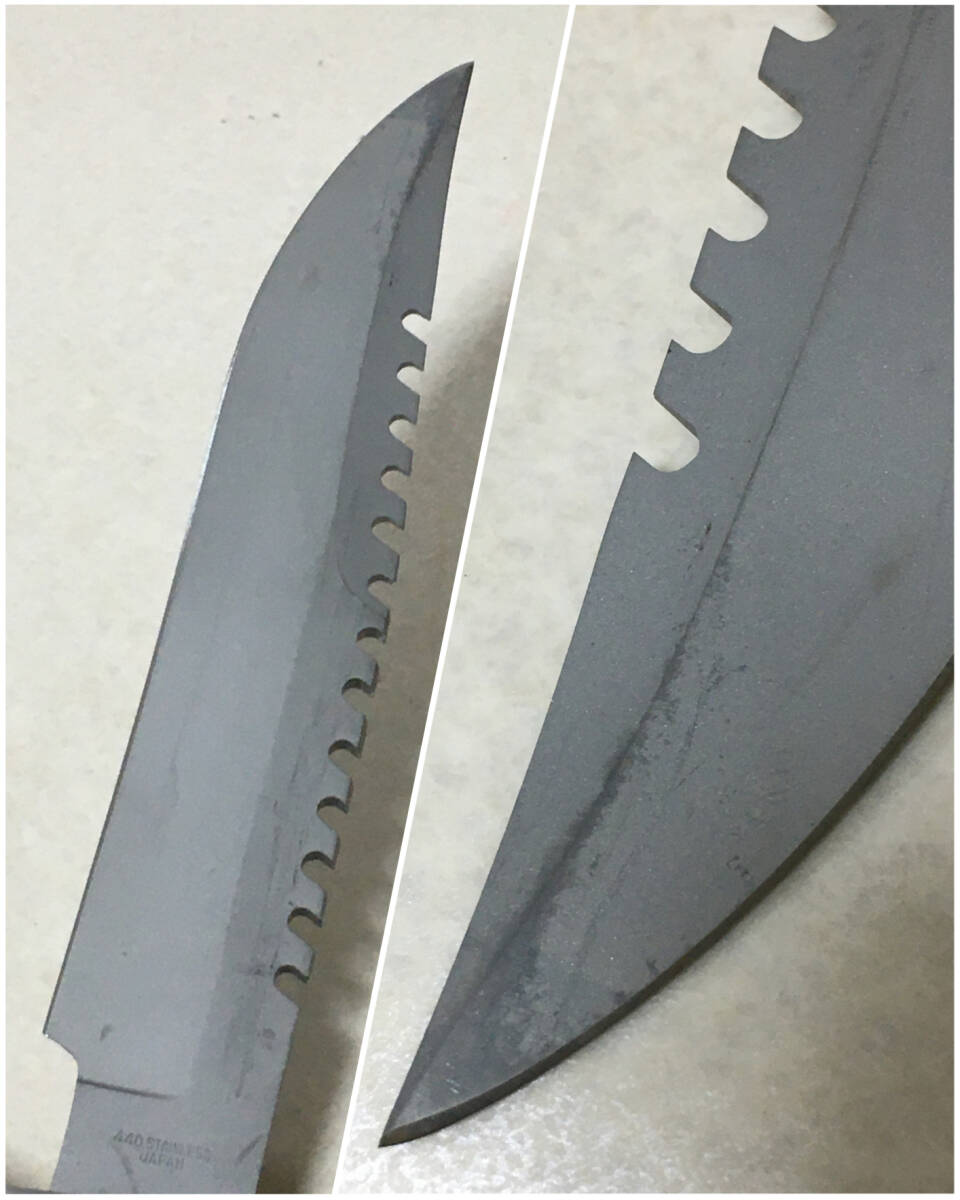 | * 商品説明 * 長期保管品です。大きい傷はありません。 刃(ヒルト含み):変色が見受けられます。ややすれがあります。 ハンドル:割といい状態です。 ケース:汚れ・すれ・くすみが見受けられます。 画像にて状態をご確認ください。 ナイフサイズ: 全長約34cm 刃渡18.2cm(リカッソ含まず) 刃幅3.5cm 刃厚み0.4cm 重量288g サイズにつきましては若干の誤差があるものとお考えください。