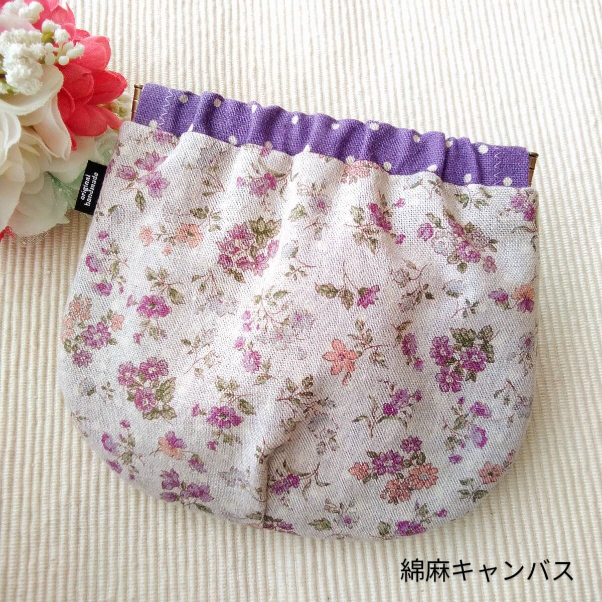 ハンドメイド バネポーチ 小花柄 パープル