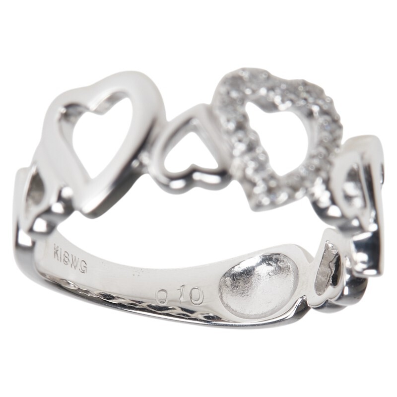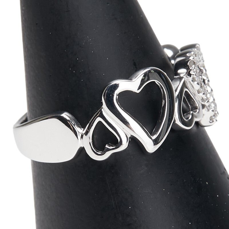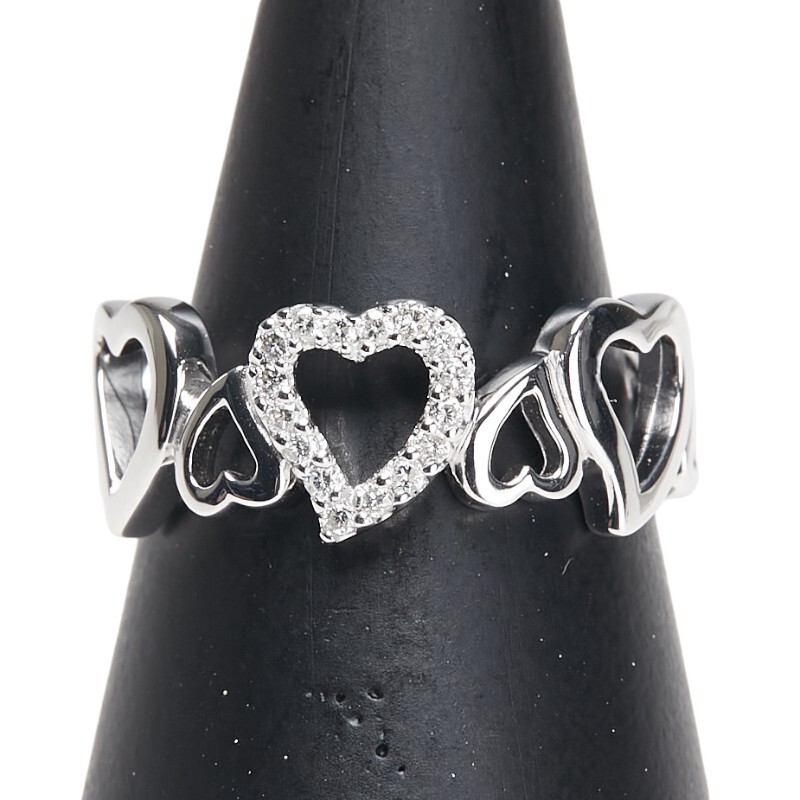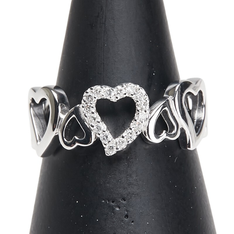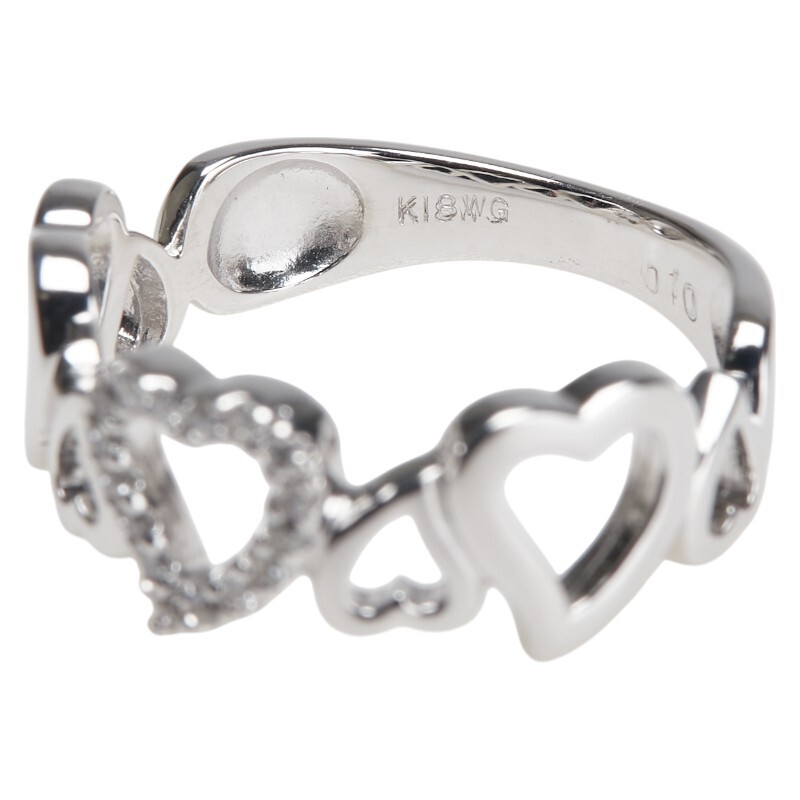 K18WG ホワイトゴールド ダイヤ0.10ct ハート モチーフ リング 指輪 レディース 12号 中古