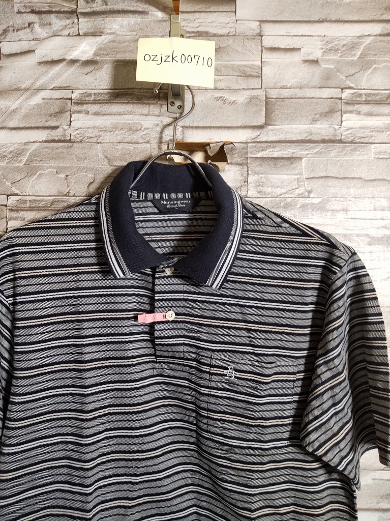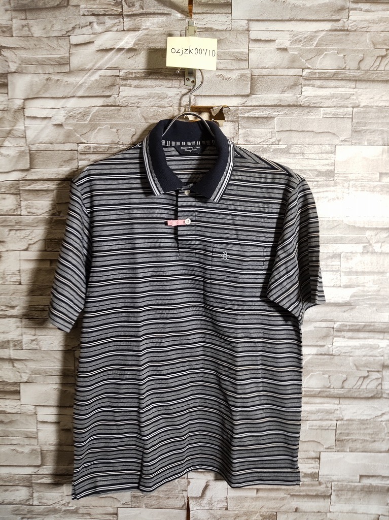 men's J118 Munsingwear マンシングウェア ボーダー 半袖 ポロシャツ L ネイビー系 ネコポス発送可