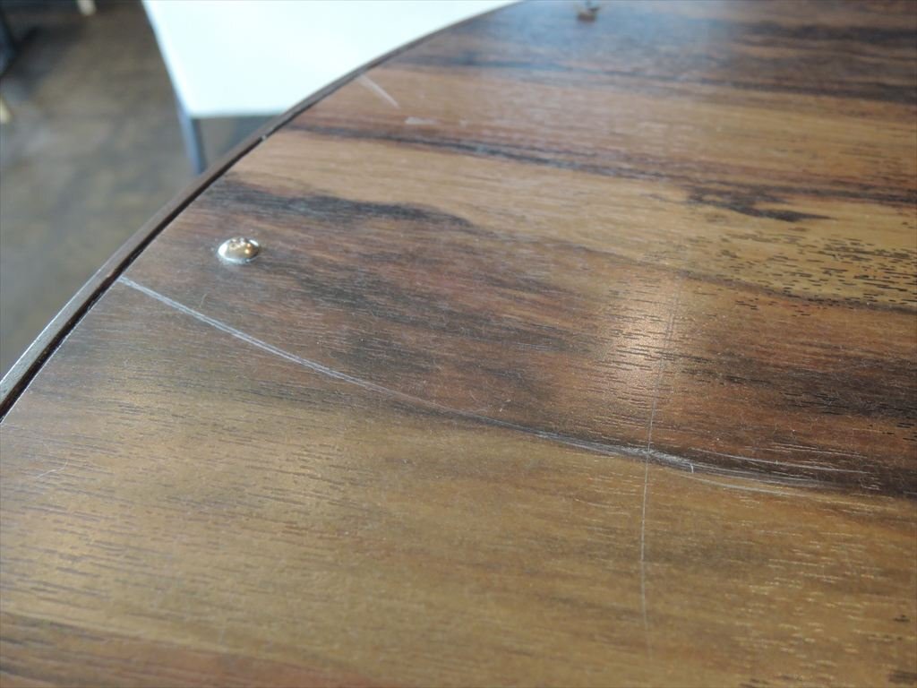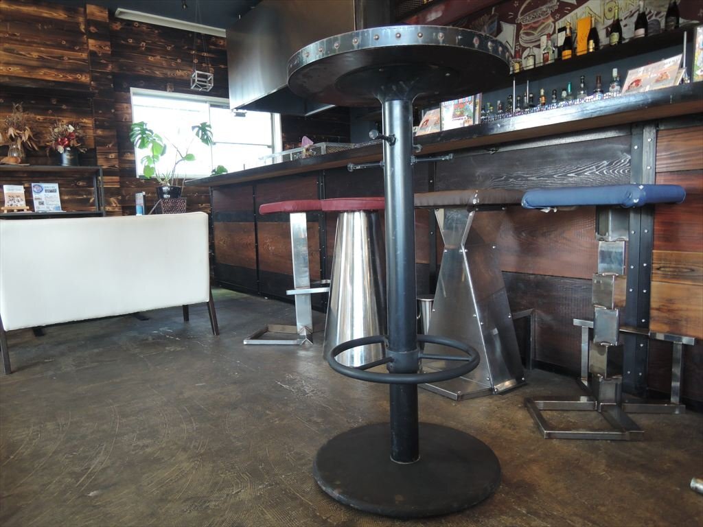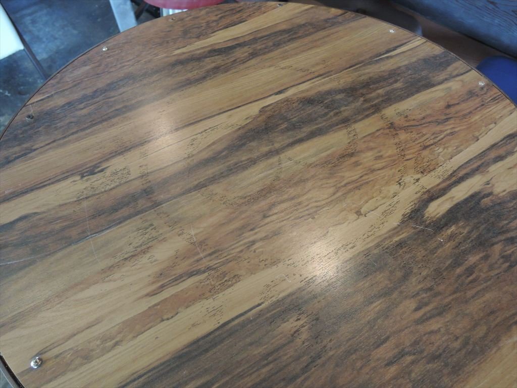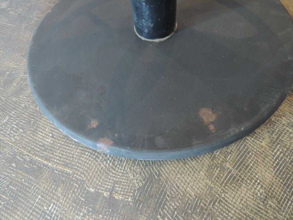 テーブルの上の部分と横の部分に傷があります。 上の部分の真ん中に元々シールで貼られてた跡があります。 足の方も画像にあるようににさびています。 バーやカフェスタイルなどにぴったし!! 画像にてご確認ください。 画像にあるもの以外は付属しません。 | |
