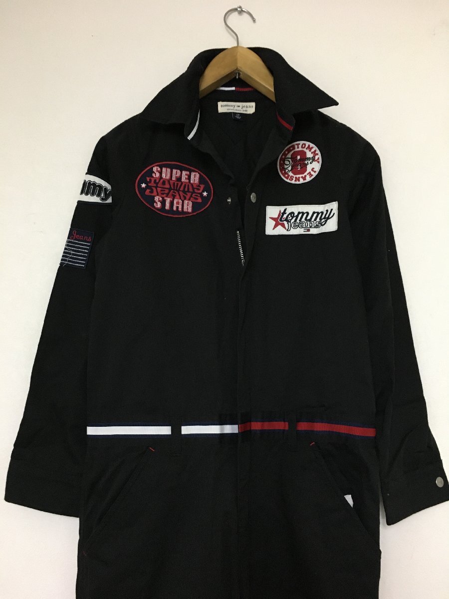 ◆ 国内正規 Tommy Jeans トミージーンズ 豪華 ワッペン オールインワン ジャンプスーツ サイズS 黒系 美