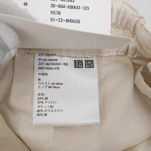 ◇ ◎●未使用● Θ UNIQLO ユニクロ パラシュート クロップドパンツ サイズM ベージュ系 レディース E