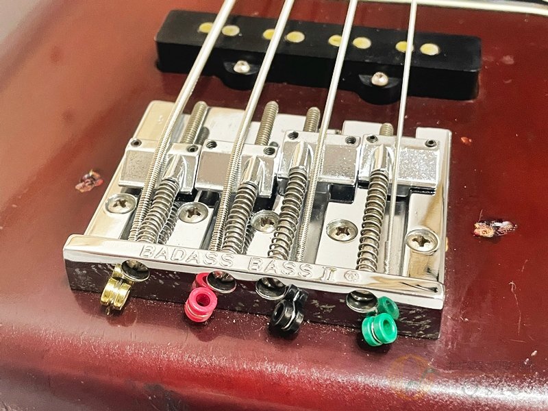 商品説明 | Fender 1978 Precision Bass 1978年製、FenderPJベースが入荷しました! 本機は元々プレベ仕様のものにリアPU、Volを増設し、PJタイプに改造されております。 ザグリ跡が丁寧に仕上げられている点から、おそらく工房などで加工されたものかと思われます。 アッシュボディにメイプル指板の構成で、引き締まった低音と立ち上がりが早いサウンドが魅力的です。 プレベ仕様だったこともあり、リアVolをカットした際の骨太サウンドは絶品。 そこにリアPUを混ぜていくことで、太くも艷やかな、唯一無二のPJサウンドが非常に心地よいです。 アッシュボディのため、重量は4.49kgと重めではありますが、ネックとボディのバランスが良く重心がうまく取れている印象です。 また、ブリッジがBADASS ?に変更されており、弦振動がよりボディに伝わりボディ鳴りも抜群です。 カスタムが多い本機ですが、どれも良い方向にグレードアップされており、どんな現場でも即戦力となる一本です。 ぜひこの機会にご検討ください! 【Spec】 Body:Ash Neck:Maple Fingerboard:Rosewood Nut Width:42mm Scale Length:863mm Number of Frets:22 F Controls:Volumex2、Tonex1 【状態】 全体的に擦れや線傷、金属パーツのくすみや錆、塗装剥がれや打痕などが見受けられ、経年相応の使用感がございます。 ボディにザグリ加工が施され、リアPU、コントロールノブが増設されており、PJ仕様に加工されています。 ブリッジがBADASS ?に交換されております。 フレット残り:5割程度 トラスロッド:余裕あり 電気系統:問題なし 重量:4.49kg ネック:問題なし 交換パーツ:フロントボリュームノブ 【調整内容】 全体クリーニング ネック調整 弦高調整 オクターブ調整 電装系クリーニング 「万が一、気に入らなければ返品OK!」で大変ご好評をいただいております、 通信販売における最大のご不安を払拭した『納得購入サポート™』ですが、 ヤフオク!におきましては、2020年2月1日よりサービスの提供を終了いたしました。 詳しくは、ヤフオク!でのサービス終了のお知らせ をご覧ください。 ヤフオク!でのご落札品は、当サービスの提供対象外でございます。 |