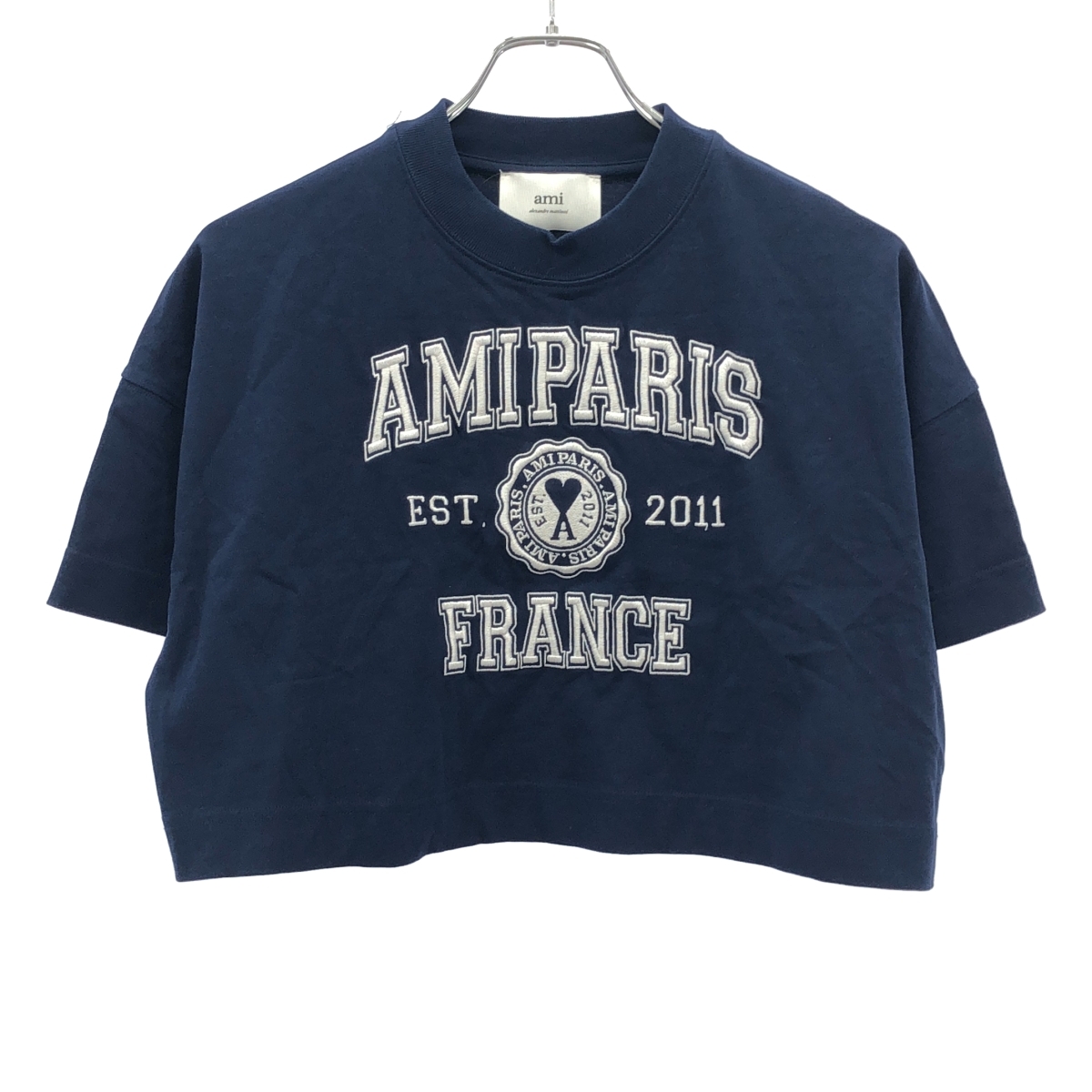 ami alexandre mattiussi アミ アレクサンドル マテュッシ ロゴエンブロイダリー クロップドTシャツ FTS008.726 ネイビー XS ITYQR24LVSXE