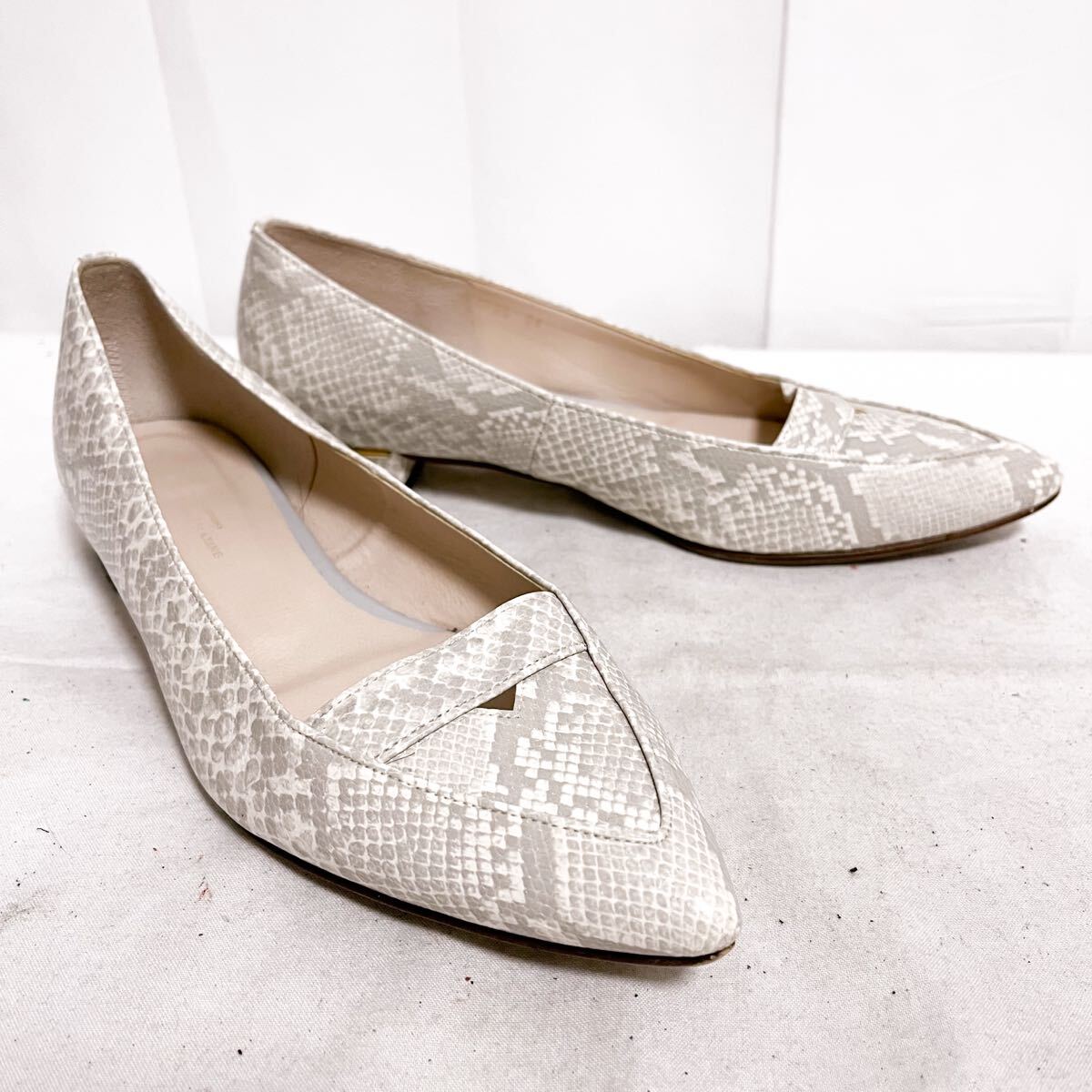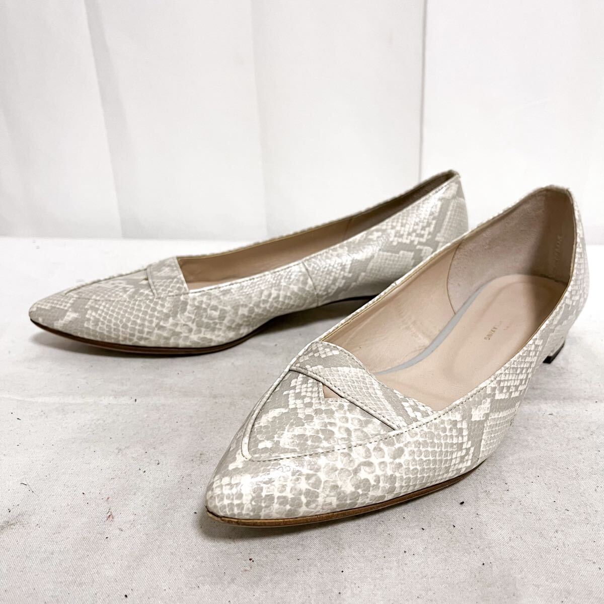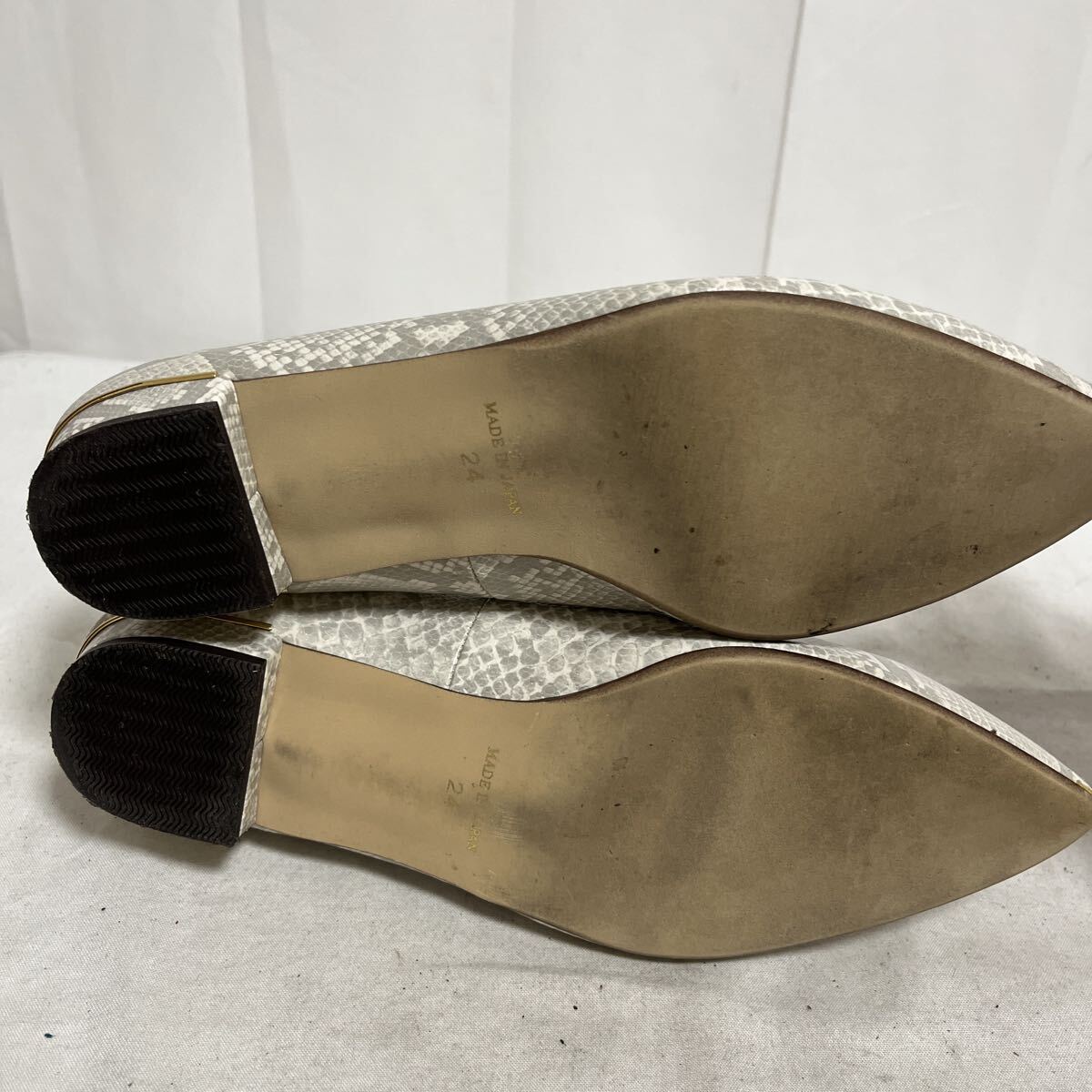 和812★ GREEN LABEL RELAXING グリーンレーベルリラクシング パンプス パイソンプリント 日本製 24 ホワイト グレー レディース