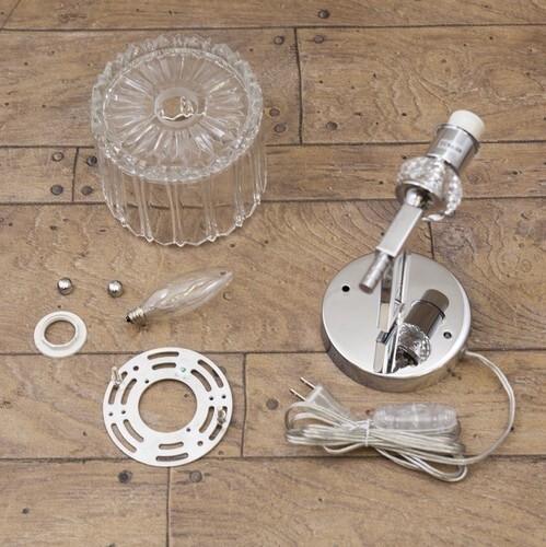| [本 体]約 W.15 x D.26 x H.22 cm [重 量]約 1.6 kg ■素材・成分: [素 材]アイアン、クリスタルガラス [付 属]E12 40W(水雷型) 白熱電球1個付き (最大40Wまで対応) |