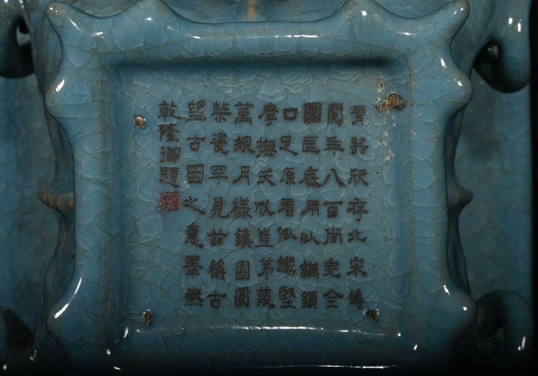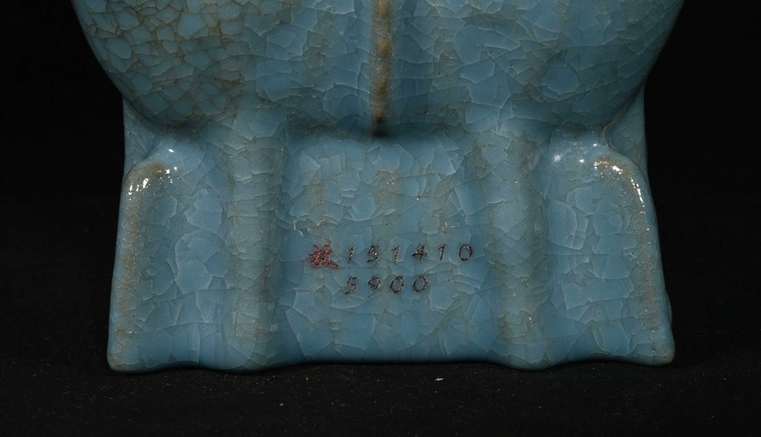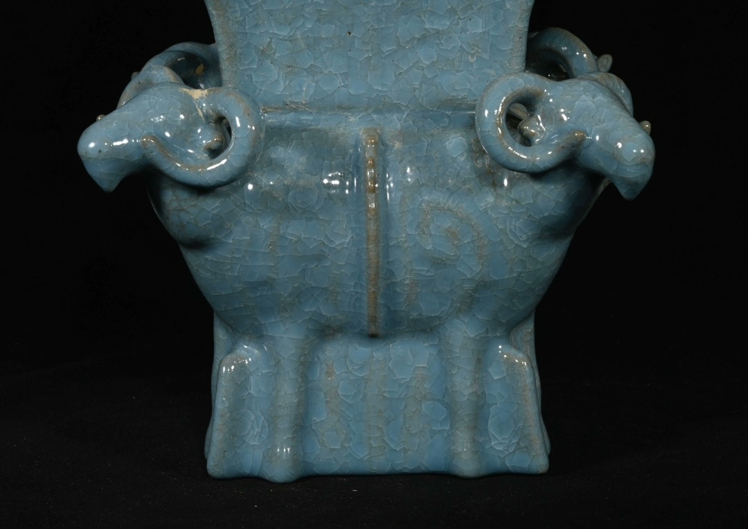 宋時代 官窯 冰片紋 乾隆禦題紋 刻故宮編號 四羊方尊 ―對 ・古陶磁器 ・珍品旧蔵・古賞物・時代物