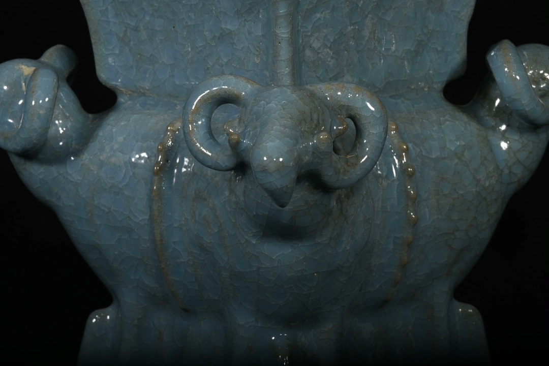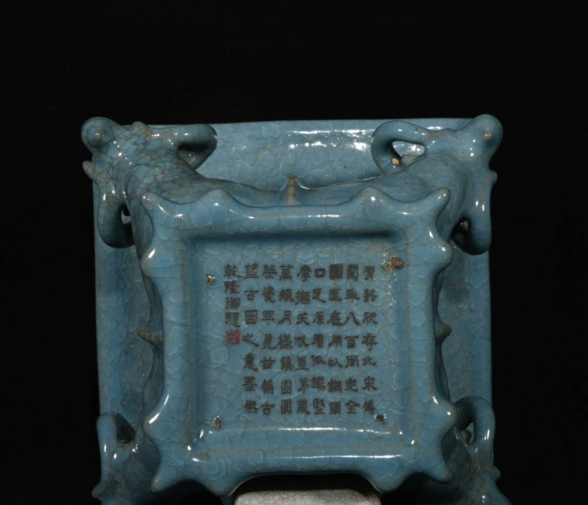 ☀ 宋時代 官窯 冰片紋 乾隆禦題紋 刻故宮編號 四羊方尊 ―對 ・古陶磁器 ・珍品旧蔵・古賞物・時代物 ☀