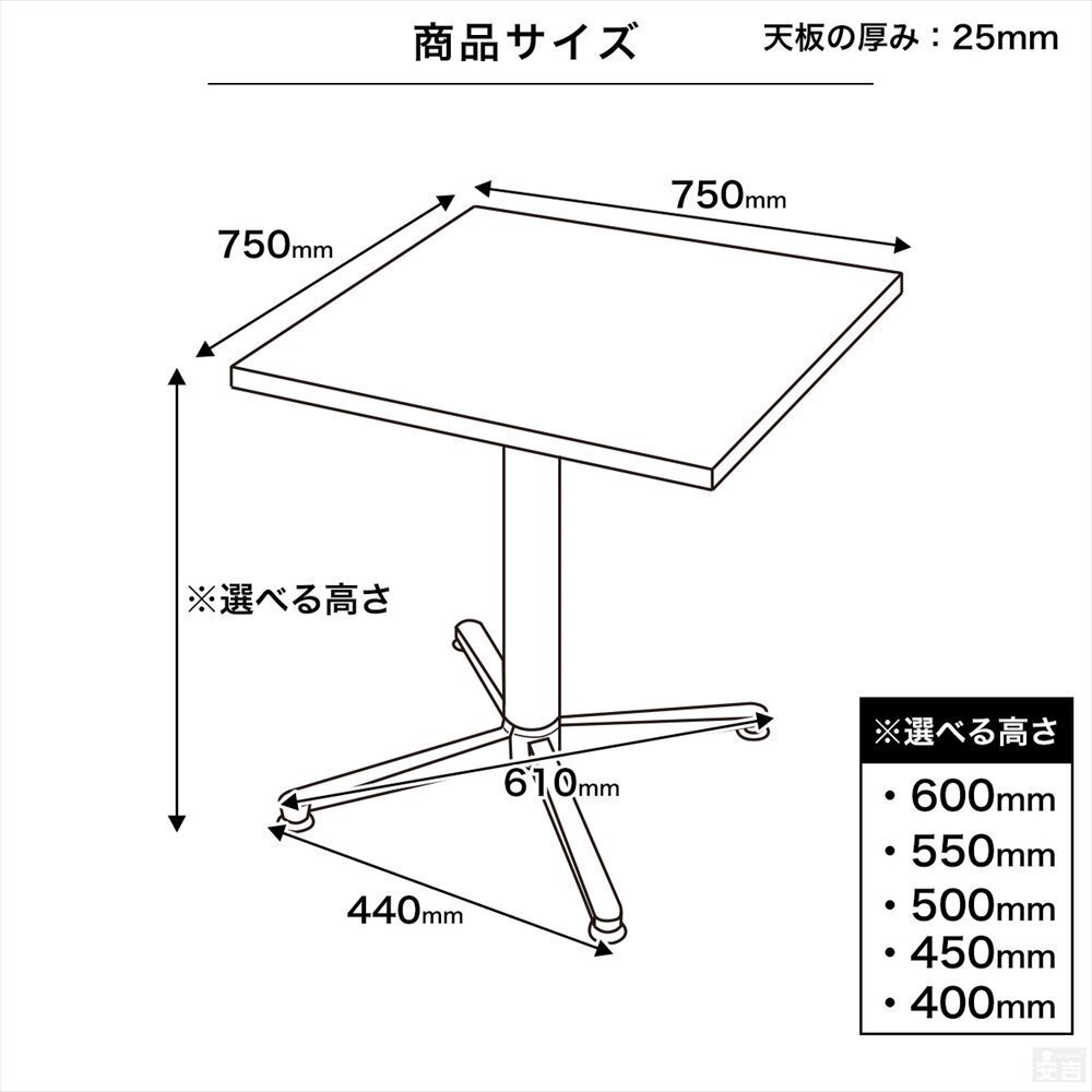 業務用 レストランテーブル 750×750×H400 RTB-7575 クリアナチュラル 十字ベース脚 |