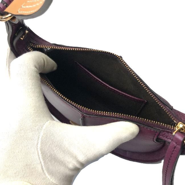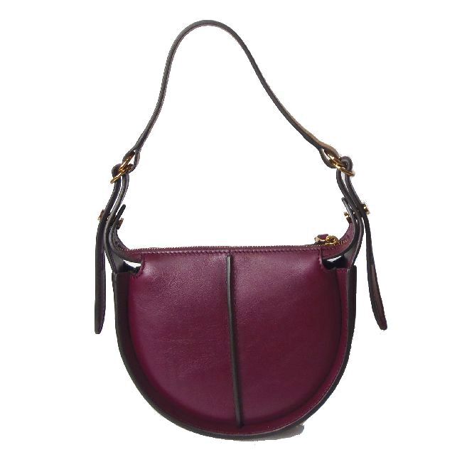 上質なレザーの質感とと美しいフォルムが魅力的な逸品。 サイズはちょっとしたお出かけにピッタリのMICRO。肩掛けOKです。 ダークパープルのCOLORも差し色にピッタリで上品です。 MADE IN ITALY. 革製品特有の天然の皴等はご了承ください。保存袋・紙カード(曲がりあり)付属。
