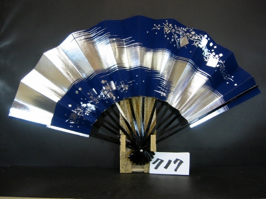 舞扇子 A717 銀箔かすみ小石ノギ 紺べた 【箱なし】