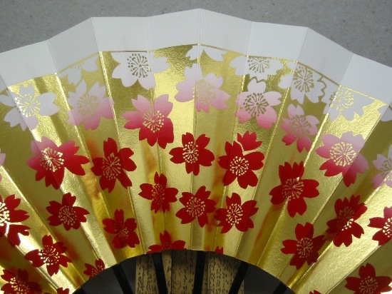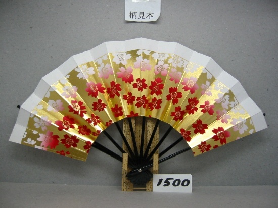 舞扇子 A1500 金箔桜ヌキ 赤色腰ぼかし 【箱なし】