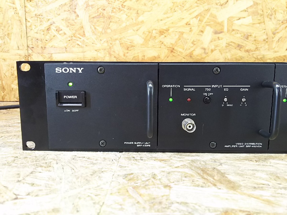 SONY SRP-400PS 電源ユニット・SRP-400VDA ×3台 ビデオ分配ユニット ーーーーーーーーーーーーーーーーーーーーーーー ●メーカー:SONY ●型 番:SRP-400PS・ SRP-400VDA ●品 名:電源ユニット・ビデオ分配ユニット ーーーーーーーーーーーーーーーーーーーーーーー ●電源が入り、映像機器、本体、テレビに繋ぎ前面・後面の全部のBNC端子で 映像が出る事だけ確認しました。 ●2U BASE UNIT・SRP-400Bに、電源ユニット(SRP-400PS)と、 ビデオ分配ユニット(SRP-400VDA)3台が組み込まれています。 ◎付属品 本体のみ ※ACケーブルつきません。 ◎外観 本商品は中古品です。経年・使用に伴う擦り傷/汚れがあります 外観等を著しく気になさる方や新品に近い美品をご希望の方はご遠慮ください 筐体やフレームに傷がございます。 ●詳しい仕様等、商品についてはメーカーサイトなどをご参照ください ●通電のみ確認の出品の為、保証や返品は対象外です。 お届け後、使用できなかったとしても返品はお受けできません。 ※保証期間内であっても,水没・落下などお客様が原因で起こった不具合は保証対象外です ※ハードウェア、ソフトウェアに関するサポートは行ってません