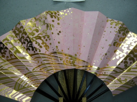 舞扇子 A1181 金箔波 ピンク色かわり紙 【箱なし】