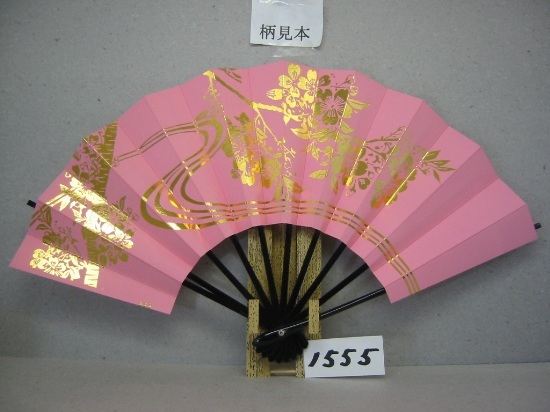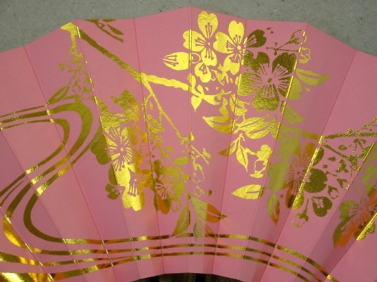 舞扇子 A1555 金箔桜枝流水 薄ピンク地 【箱なし】
