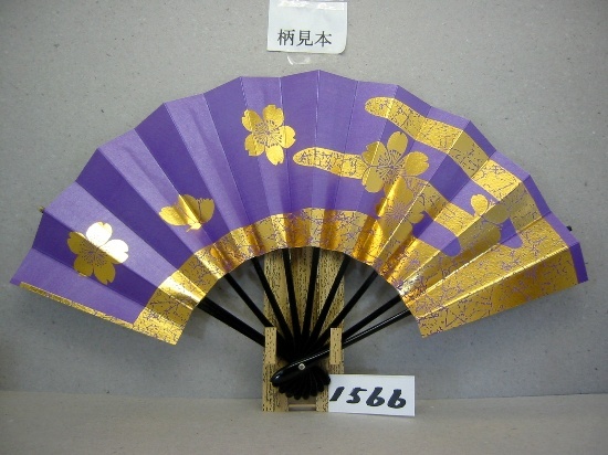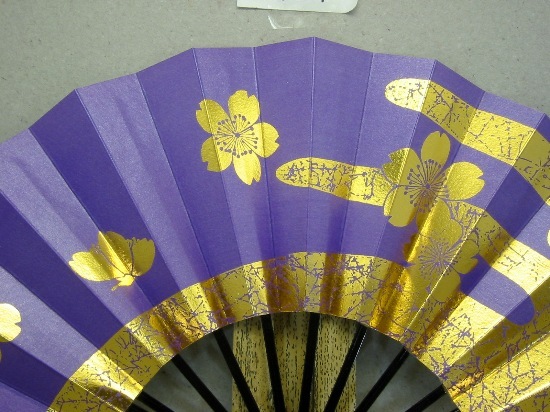 舞扇子 A1566 金箔桜揉み入雲 紫シルバー引き 【箱なし】