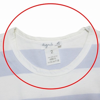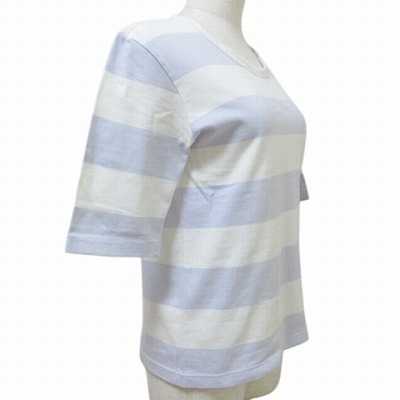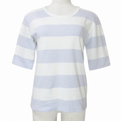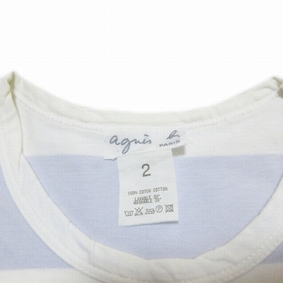 アニエスベー agnes b. カットソー Tシャツ 5分袖 ボーダー 2 M相当 ホワイト パープル X レディース
