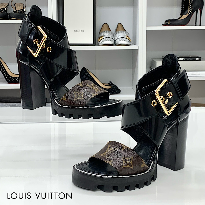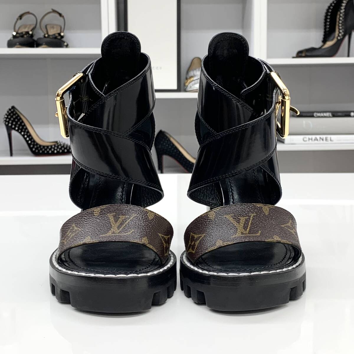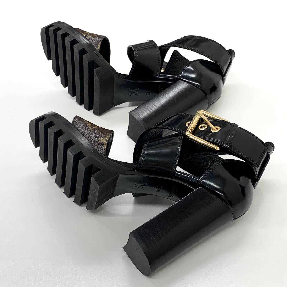 ヴィトン スタートレイル レザー モノグラム クロスストラップ サンダル ブラック