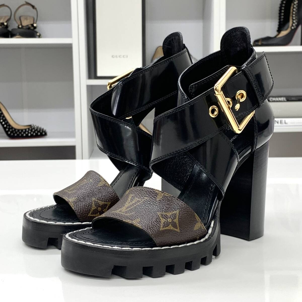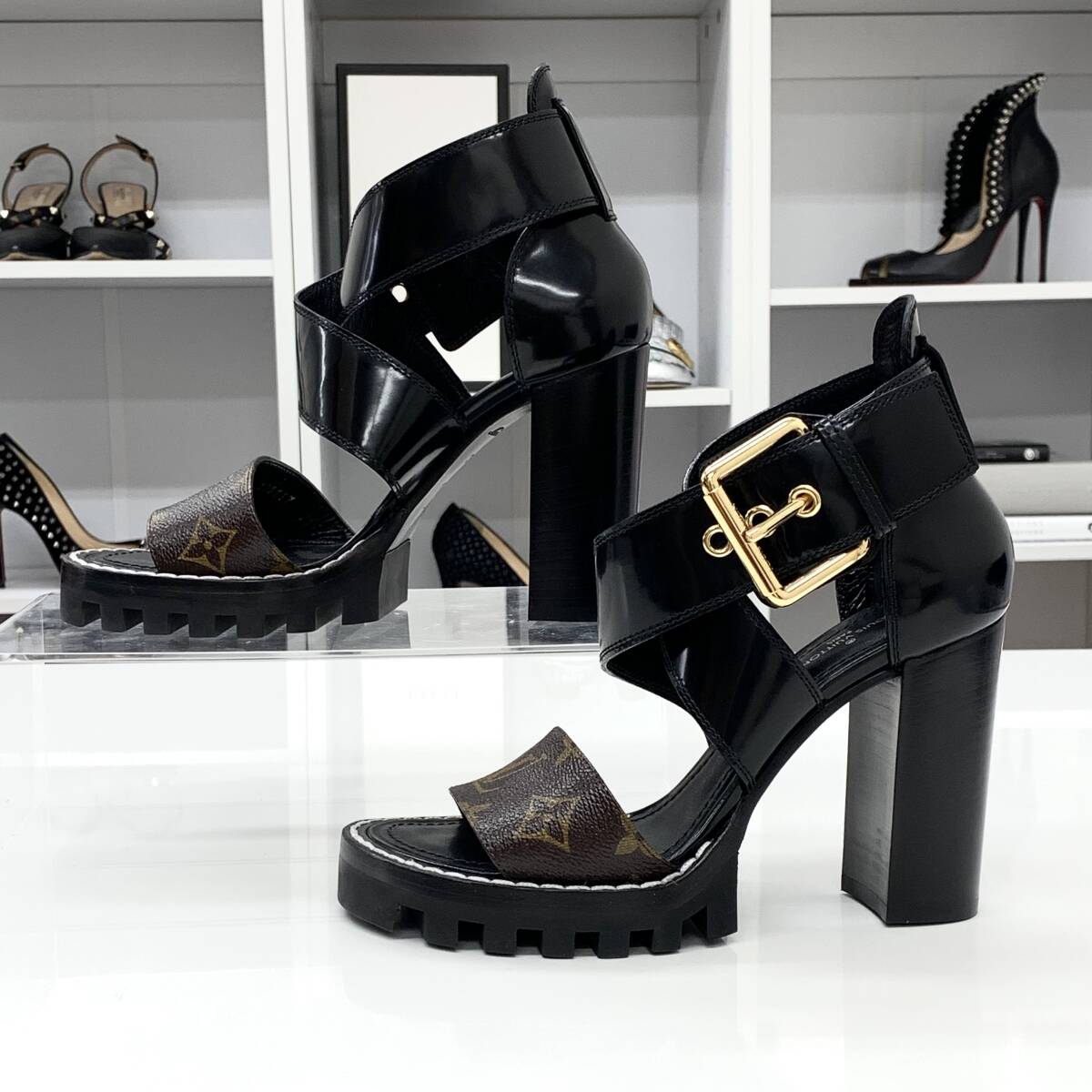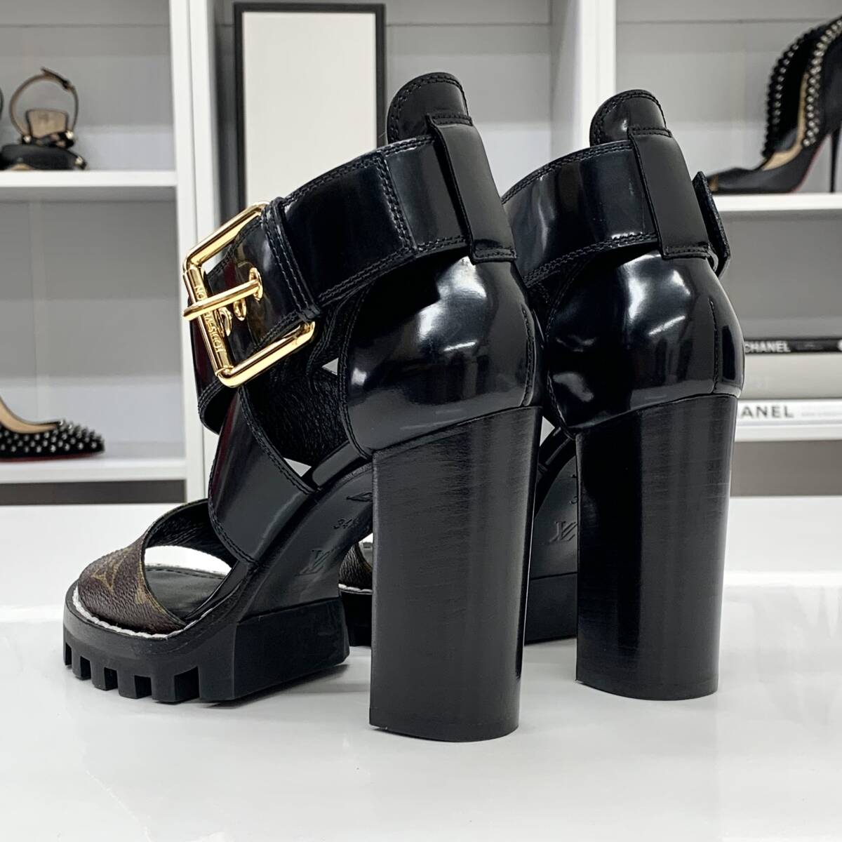 ヴィトン スタートレイル レザー モノグラム クロスストラップ サンダル ブラック