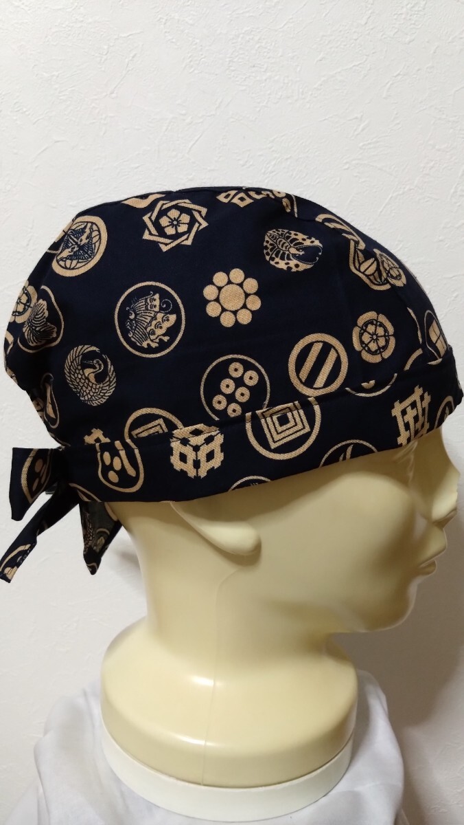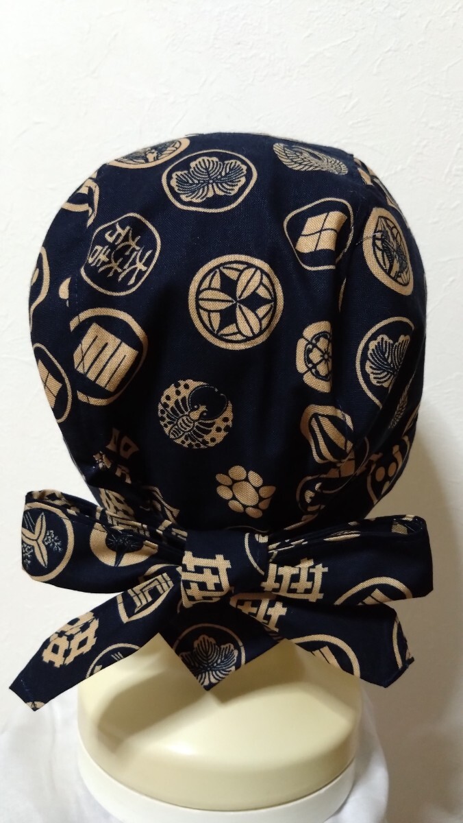 短★バンダナキャップ★ハンドメイド 和柄 家紋 古典 紺